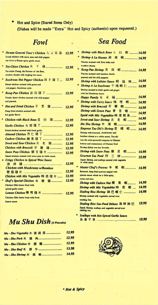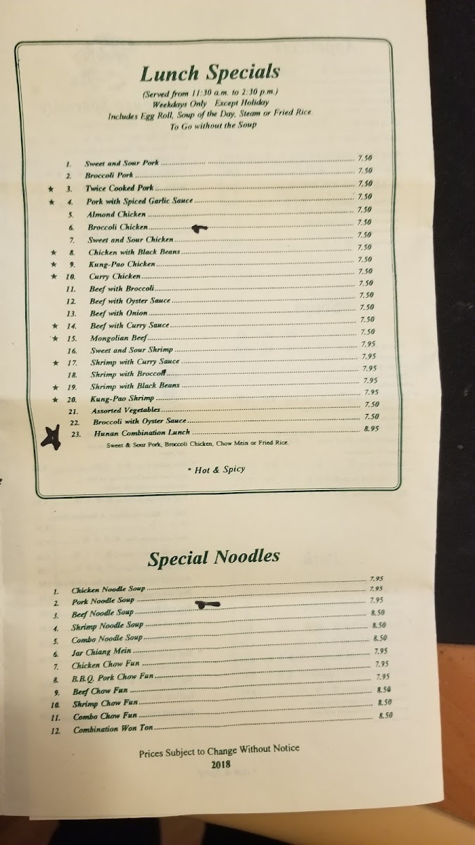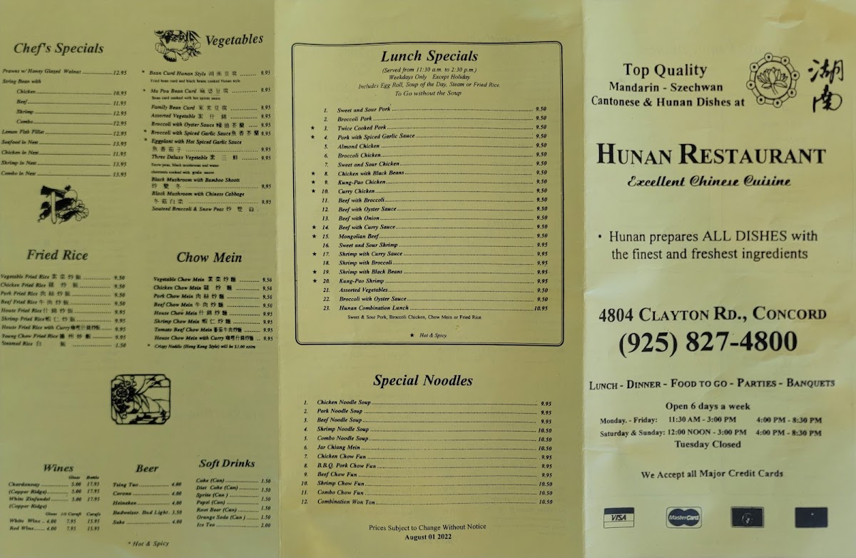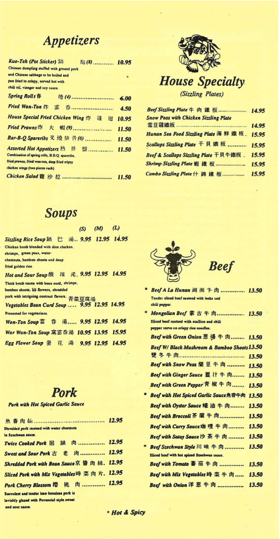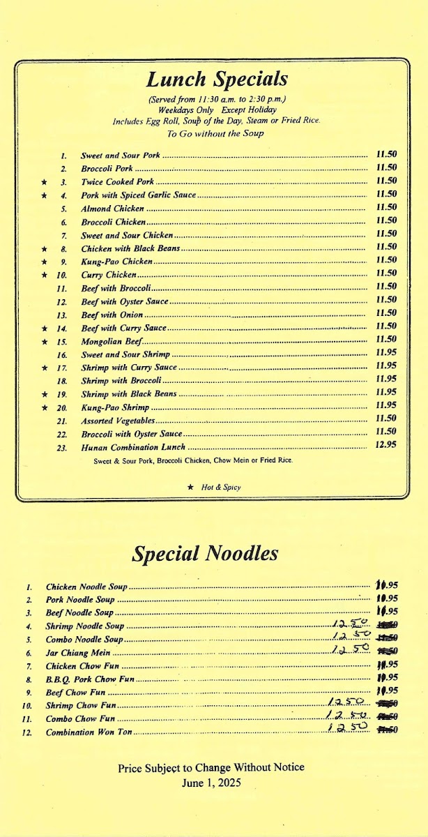 Hunan Restaurant Menu